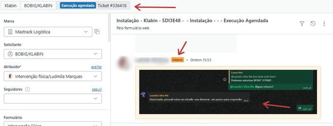 * Para placas que não possuem chamados (comum em instalações/desinstalações 🔧), siga o procedimento de criação de chamado descrito no manual de treinamento 📖.
