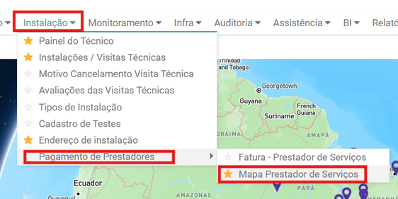 * Vá em: Instalação → Pagamento de Prestadores → Mapa - Prestador de Serviço.