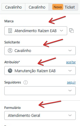 * Na aba Marca, altere para Atendimento Raízen EAB.