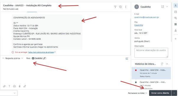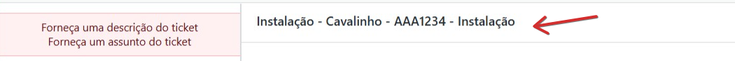 * Assunto → Exemplo: Instalação – Cavalinho – AAA1234 – Instalação