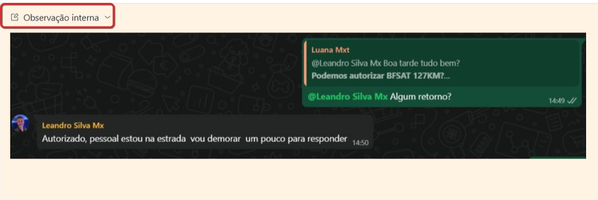 7). Em Observações Internas, registre todas as informações pertinentes: