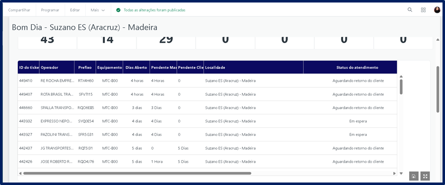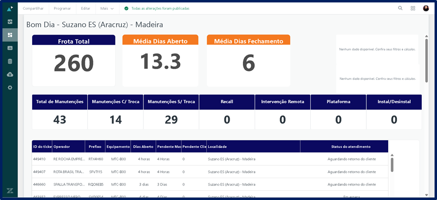 Dessa necessidade nasceu o painel “Bom Dia”, agora disponibilizado como uma aba no Zendesk. O nome foi mantido por já ser familiar aos clientes e representar exatamente a proposta da ferramenta: oferecer, logo no início do dia, uma visão clara, organizada e atualizada da situação das frotas.