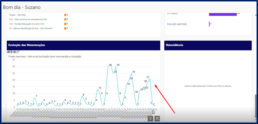 E por fim nesta aba, temos um gráfico que nos traz a informação do avanço das manutenções diárias que foram realizadas.