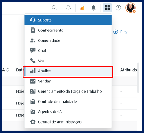 Na tela principal do Zendesk clique no ícone com os “quatro quadradinhos”;