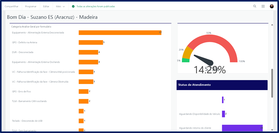 Por meio do BOM DIA, é possível consultar de forma centralizada o status atual dos veículos, identificar necessidades de manutenção, acompanhar pendências, visualizar a distribuição dos equipamentos instalados (como MTC 800 e MTC 130), além de analisar chamados em aberto e o tempo médio de tratativa.