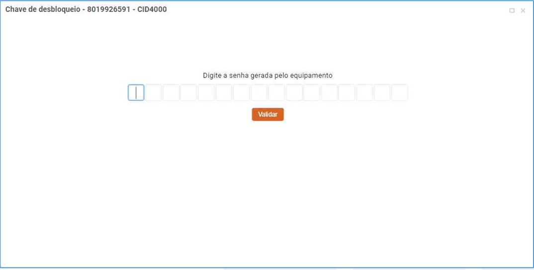 Na tela abaixo você deverá inserir a chave que o motorista irá gerar no Terminal de dados: