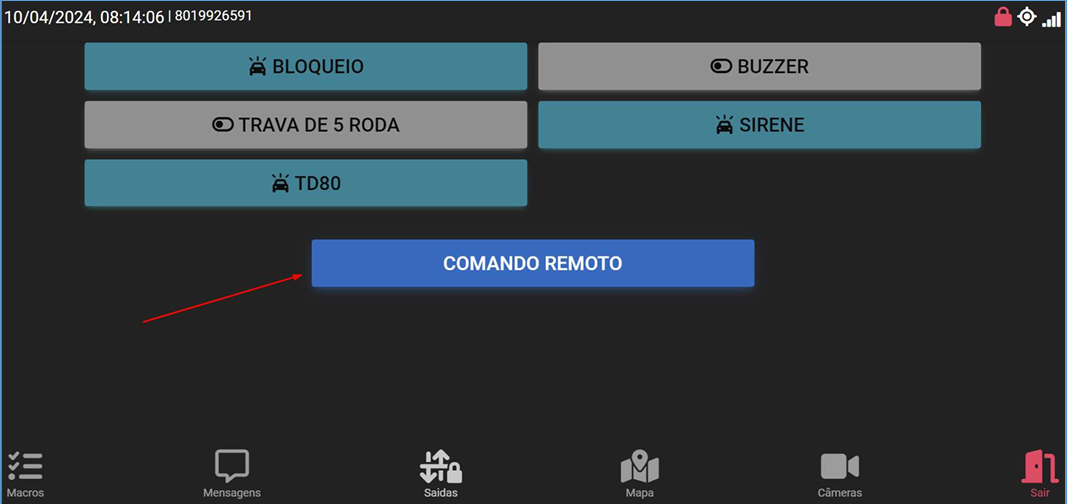 Na tela de saídas ele deverá clicar em “COMANDO REMOTO”: