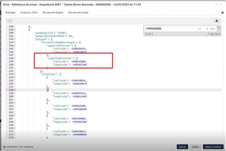 - Locations: Os valores informados, se referem as pontas do polígono, usado como exemplo.