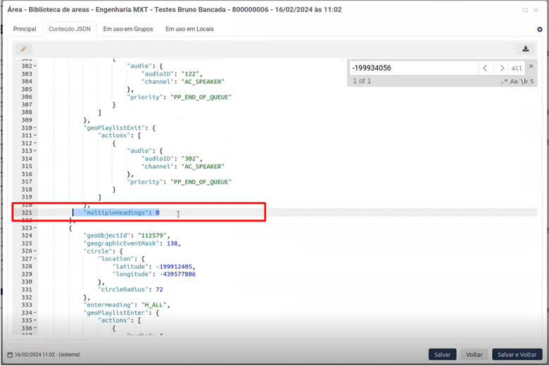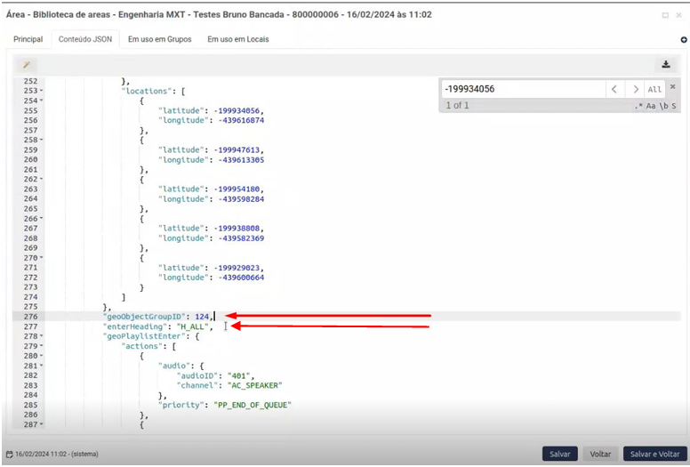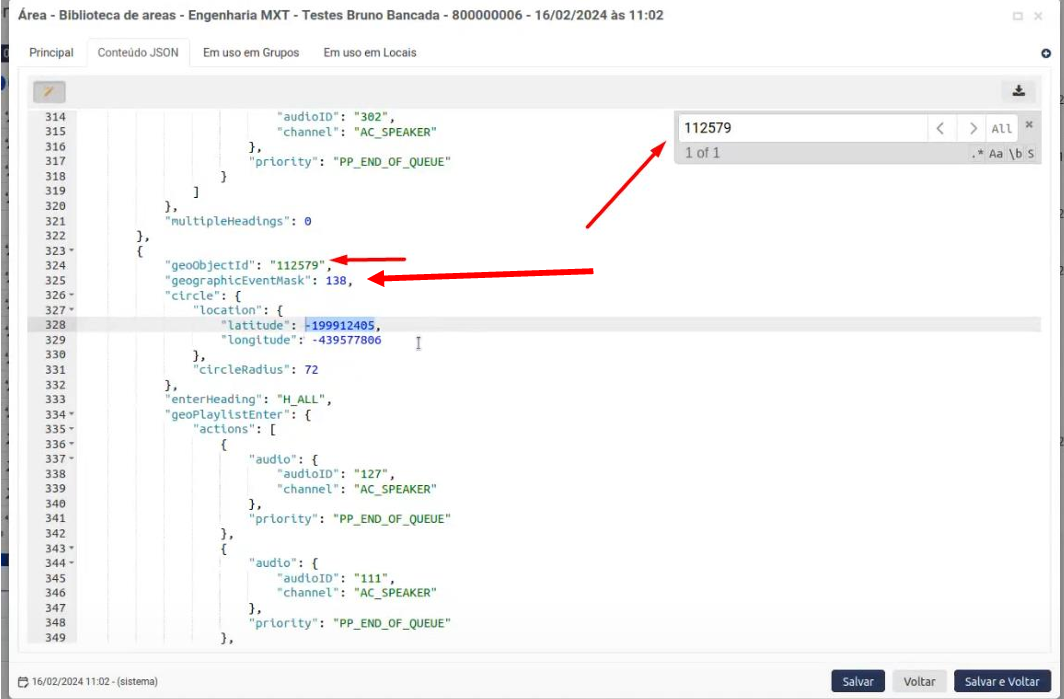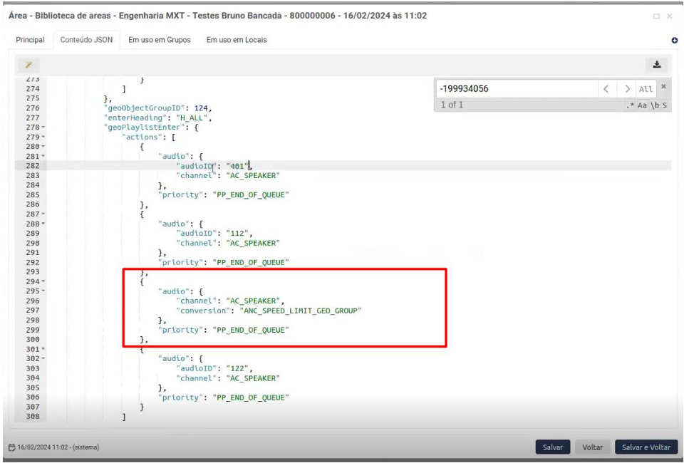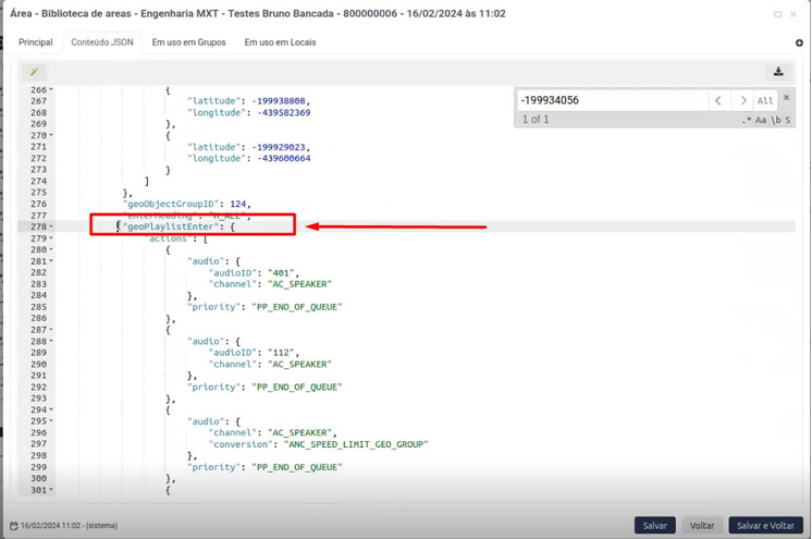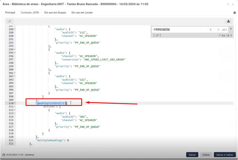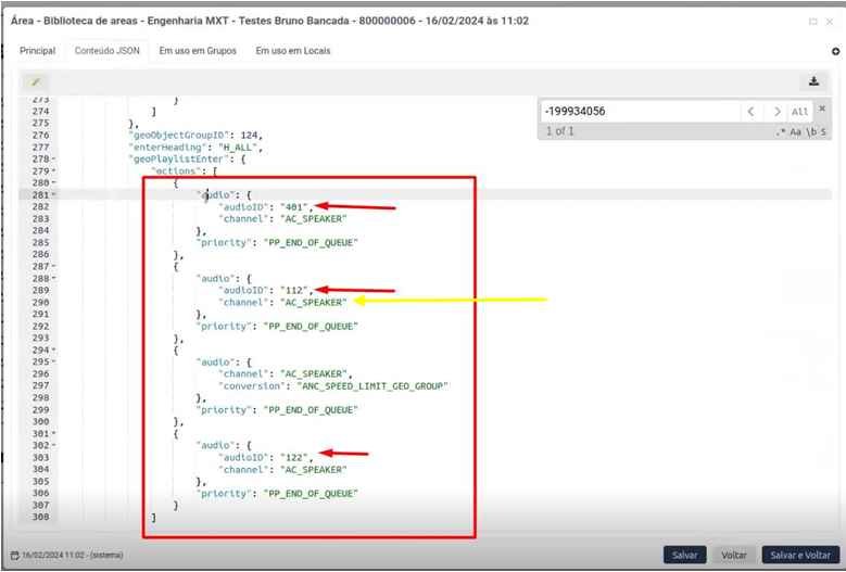 - Nas ações (actions) do geoPlaylistEnter temos a lista de áudios habilitados que estão rodando por ondem de prioridade seguindo a fila.