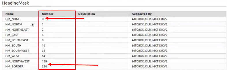 - Máscaras configuradas no Multipleheadingd: Para configuração dessas máscaras, se é somada as direções dos pontos que você quer acrescentar. E esse valor somado, a própria plataforma já irá colocar no arquivo Multipleheadingd.