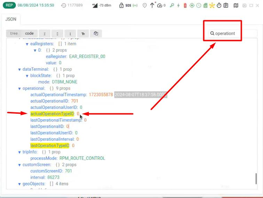 - Através do pacote REP, digitando OPERATION, você consegue ter a informação do tipo operacional atual. Pegando o valor pela opção actualOperationTypeID, é possível ver dentro da Biblioteca de Tipo de Operação, qual o valor dele.