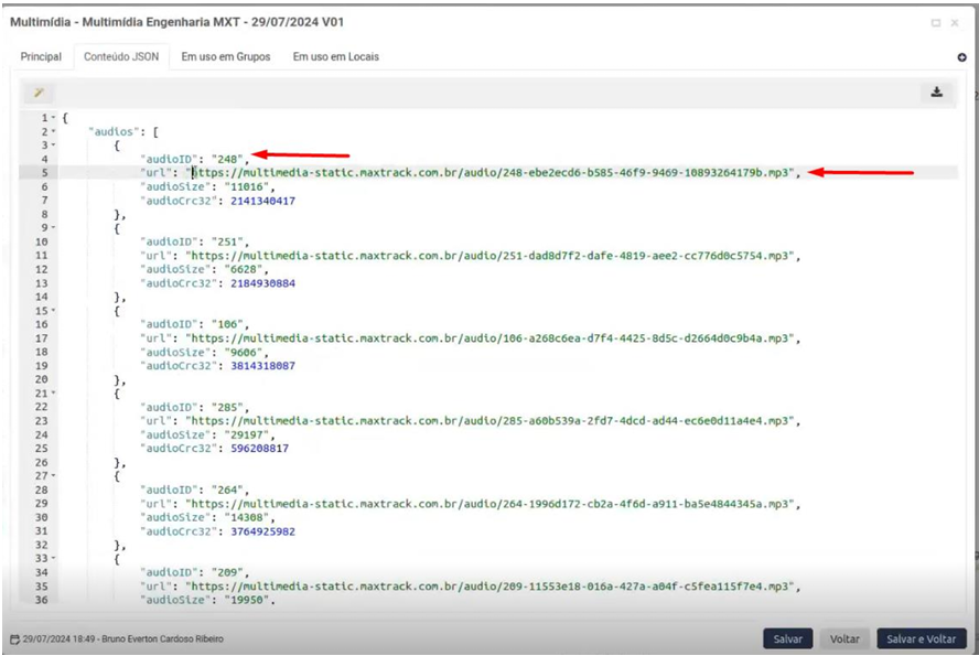 Pelo audioID conseguimos pegar o código do áudio e conferir na Biblioteca de Multimídia, qual áudio está sendo tocado, através do URL, colocando no navegador para tocar.