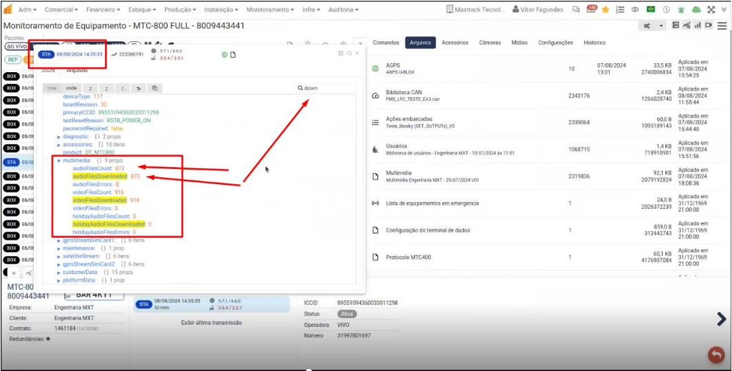 - Pelo pacote de Status é possível ver se todos os áudios daquela biblioteca que o veículo recebeu, foram devidamente baixados. Caso não tenha sido baixado toda a biblioteca, o ideal é enviar uma nova biblioteca para aquele veículo, ou apagar os arquivos multimídia que automaticamente o GO enviará uma nova biblioteca para ser efetuado o download.