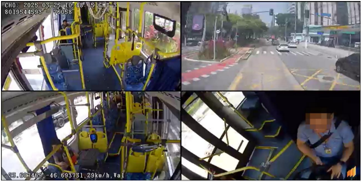 - Câmera 4 (C4): Condutor – Deverá contemplar o motorista, desde o freio de mão e volante até a porta de embarque dos passageiros;