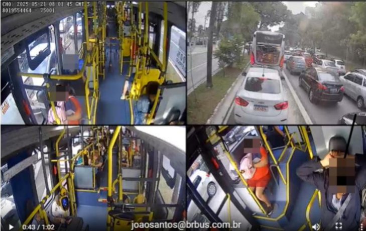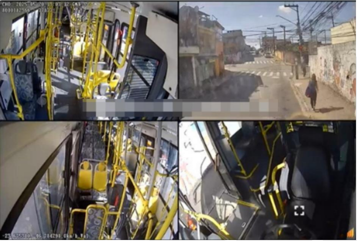 Câmera 4 (C4): enquadrar parte do cockpit do motorista e a entrada do coletivo, com foco na identificação de possíveis quedas de passageiros durante o embarque.