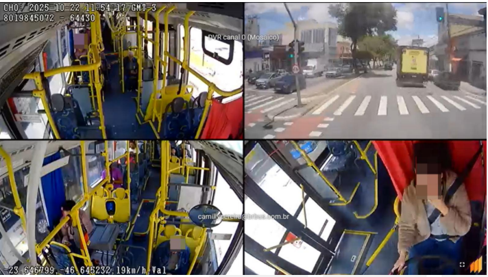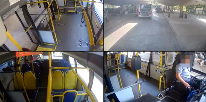 Câmera 4 (C4): enquadrar parcialmente a face do motorista, com foco na porta de entrada, a fim de registrar eventuais quedas de usuários ao embarcar.