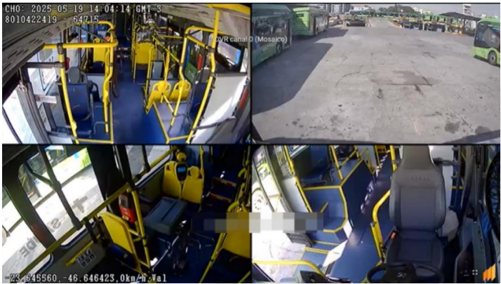 - Câmera 3 (C3): deve estar voltada para o cobrador, capturando os validadores, catraca e cobrador;