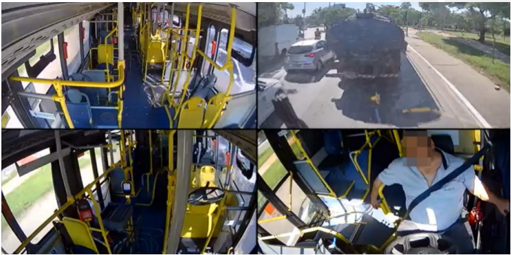 - Câmera 4 (C4): Condutor – Deverá contemplar o motorista, desde o freio de mão e volante até a porta de embarque dos passageiros;