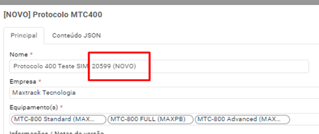 Neste campo, deve ser alterado o final do protocolo apagando a palavra Novo e dando sequencia na numeração, exemplo a primeira imagem está com a numeração 20599, alteramos o numero seguindo virando para 20600 conforme segunda imagem: