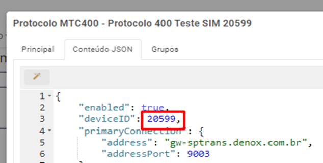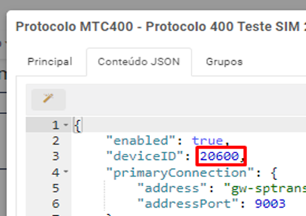 Depois vai na aba Contéudo JSON e altera a numeração do DeviceID para a mesma numeração que ficou na Aba Principal: