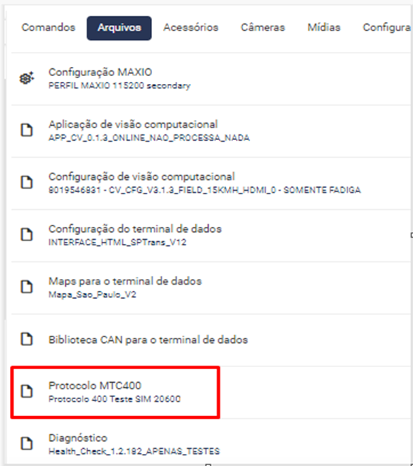 Caso tenha dúvida sobre o lançamento, entrando na aba de arquivos do detalhe, você pode identificar o protocolo que está no veículo.