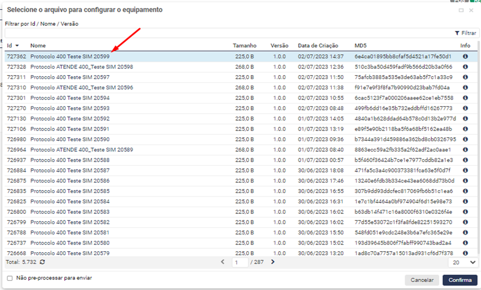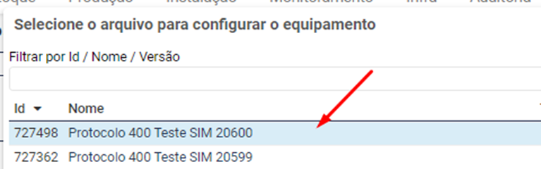 Ira apresentar o novo protocolo criado, click na parte em branco da linha do protocolo criado e depois click no botão o protocolo criado será enviado para o veículo: