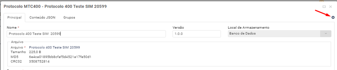Após apresentar o protocolo deve se clicar no ícone a direita com o sinal de para abrir a opção de nova de criação: