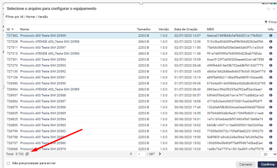 A tela ira retornar para a de selecionar arquivo, neste campo deve se clicar no botão atualizar para apresentar o novo protocolo criado: