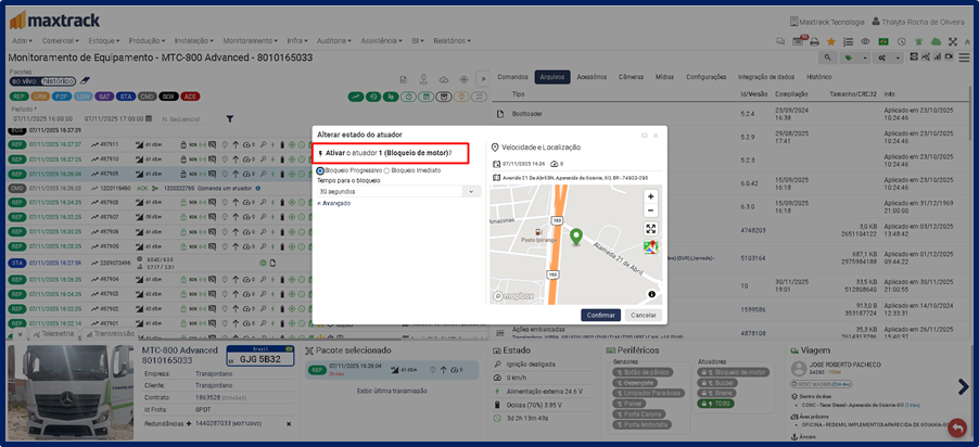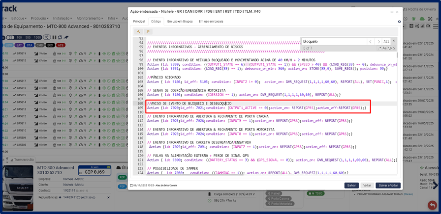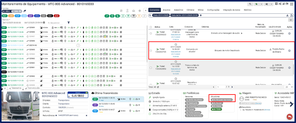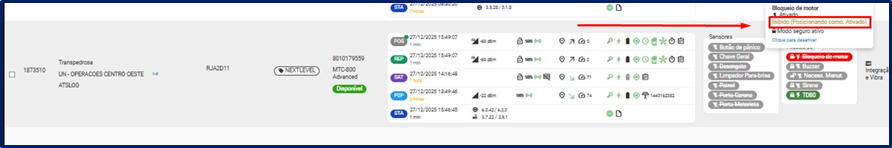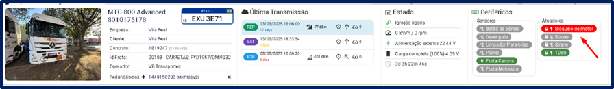 Se o cliente tiver contratado o recurso “BLOQUEIO DE MOTOR”, ele aparecerá nesta aba.