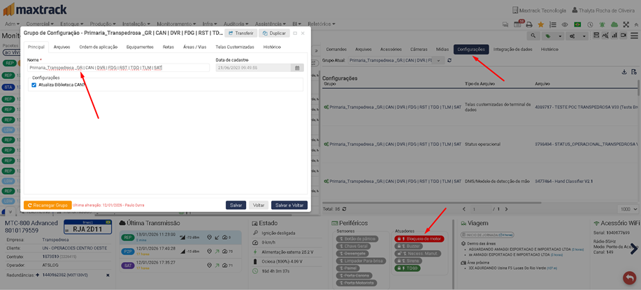 Para identificar se um veículo possui GR (Gerenciamento de Risco) instalado, deve-se inicialmente verificar o Grupo de Configurações aplicado ao veículo no sistema GO, observando se há a identificação de GR habilitada neste grupo. Adicionalmente, é necessário validar, de forma visual, nos detalhes do veículo, a presença do atuador de bloqueio, o qual confirma a instalação física do recurso de GR.