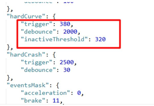 Medida de Força em miliG para a iniciar a curva brusca. Esse valor pode variar conforme o tipo de veículo/operação.